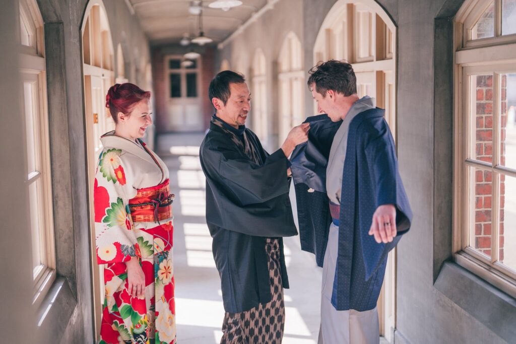「いつかいろいろとやりたいね」とお互いに話していたのが、ようやく今回、実現‼︎。Derekさんのアテンドで、カナダからいらしたOZZYさんとカトリーナさんご夫婦を着物体験にお迎えする、という形でいよいよマッチアップ。僕としても、非常にチャレンジングでエキサイティングな体験でした。