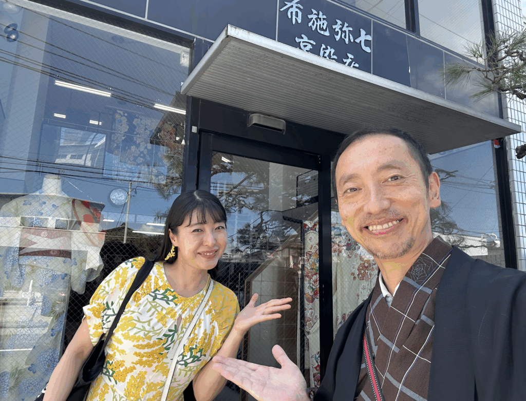こちらをお届けするのは、布施弥七京染店の専務です