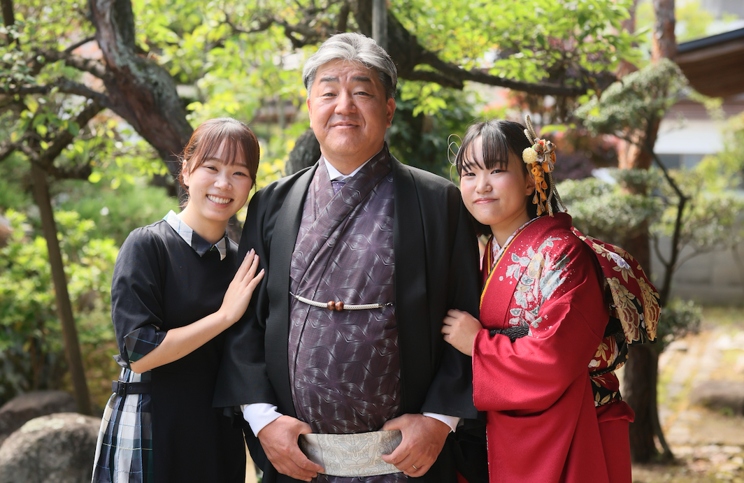 お振袖はもちろん、撮影会や成人式当日のお支度を通しお客様の思い出つくりを楽しませてもらっていて、本当に嬉しい布施弥七京染店の着物レンジャーです。お嬢様とご家族様が、まるで親戚のような気持でご一緒させて頂き、おかげさまで長い間お振袖のお手伝いをさせていただいている、地元の専門店です。