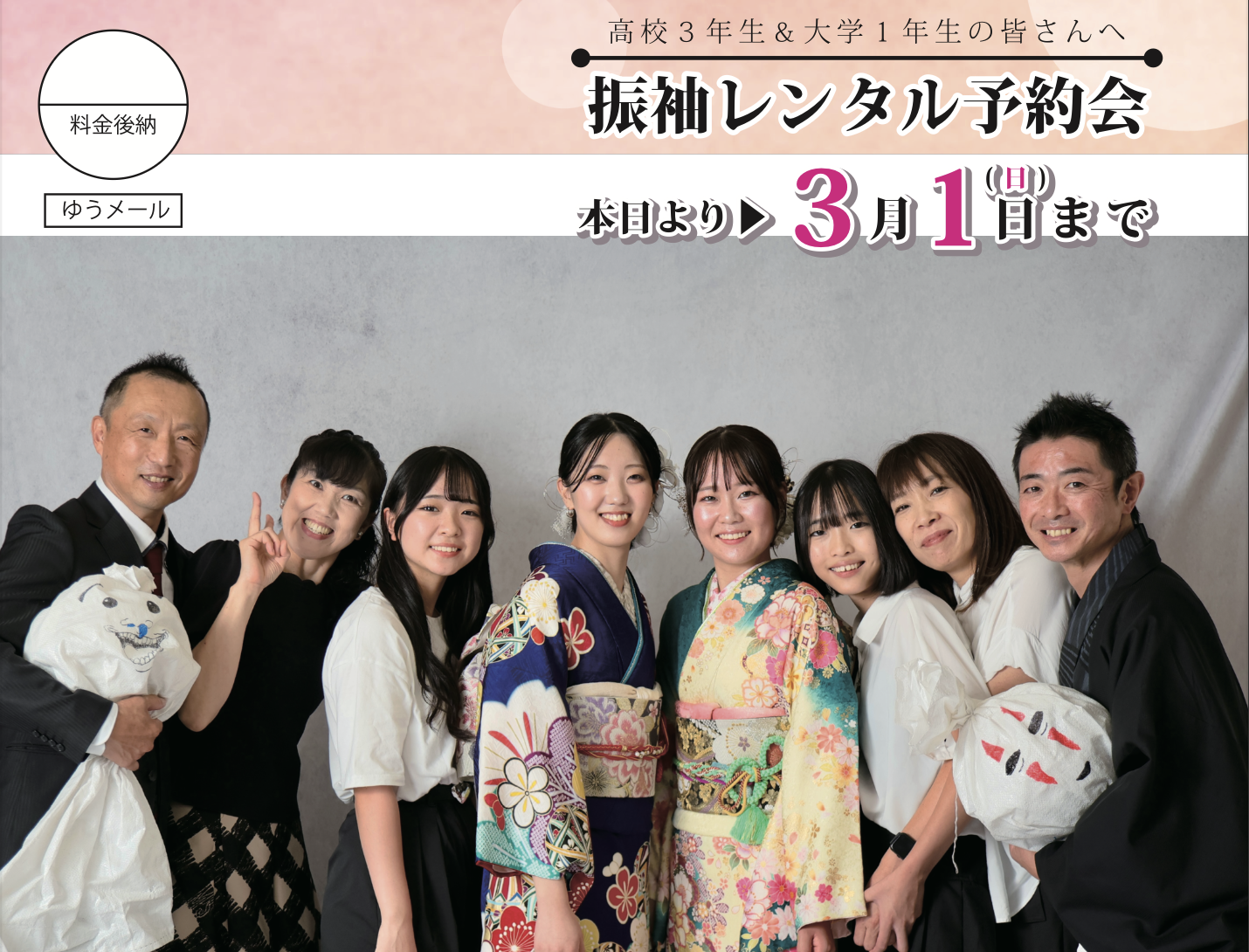 弊店では年末年始も振袖展を絶賛開催中!!ぜひ高校2年生・3年生&大学1年生に